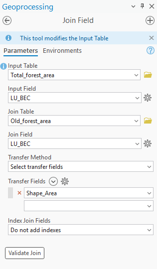 - Transfer Field: Shape_Area (from Old_Forest_Area)