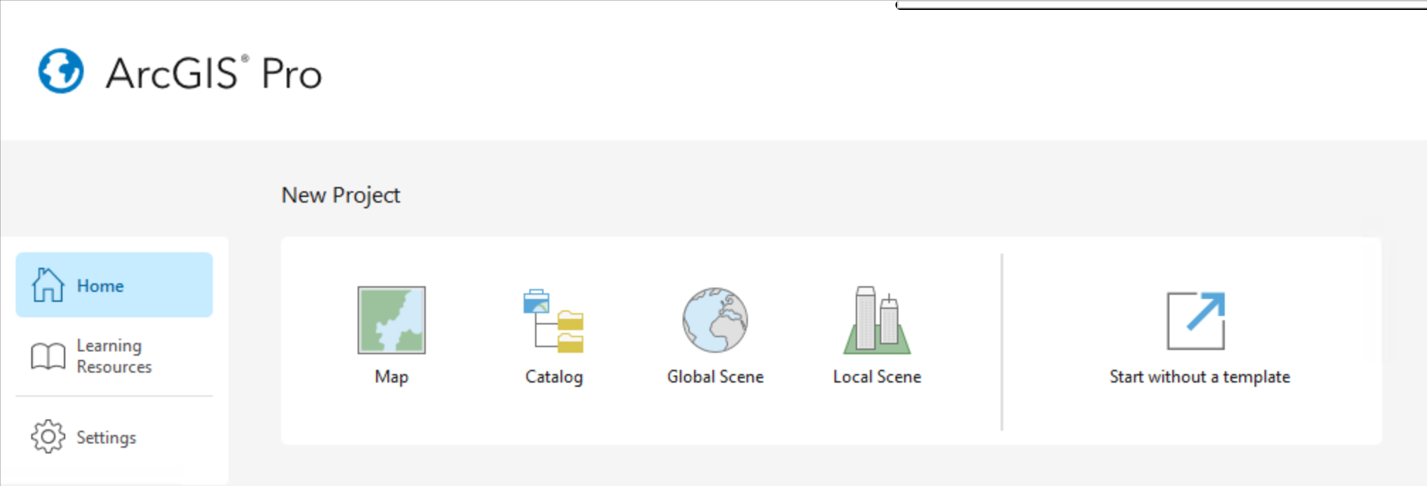 Step 1: Start ArcGIS Pro. On the start-up screen, you will be prompted to select the type of project. Select “Map” and give your project a meaningful name, something like FRST538_Lab1 is a good choice. When you create a project, ArcGIS Pro will create a folder with your project name in C:\Users\[your username]\Documents\ArcGIS\Projects\[your project name]\.