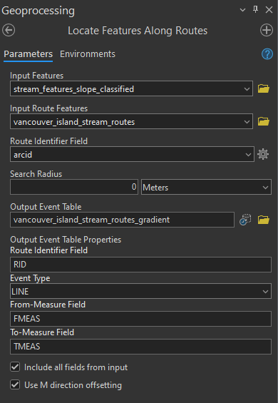 Step 5: Use the “Locate Features Along Routes” tool to overlay the gradient information with the routes.