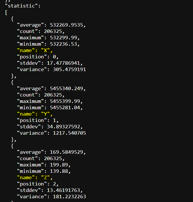 Step 2: Click to open one of the metadata txt files in your browser. This is json-formatted metadata for the associated LiDAR tile. Scrolling through it you will find summary statistics over a number of different dimensions. What attributes describe these LiDAR data?