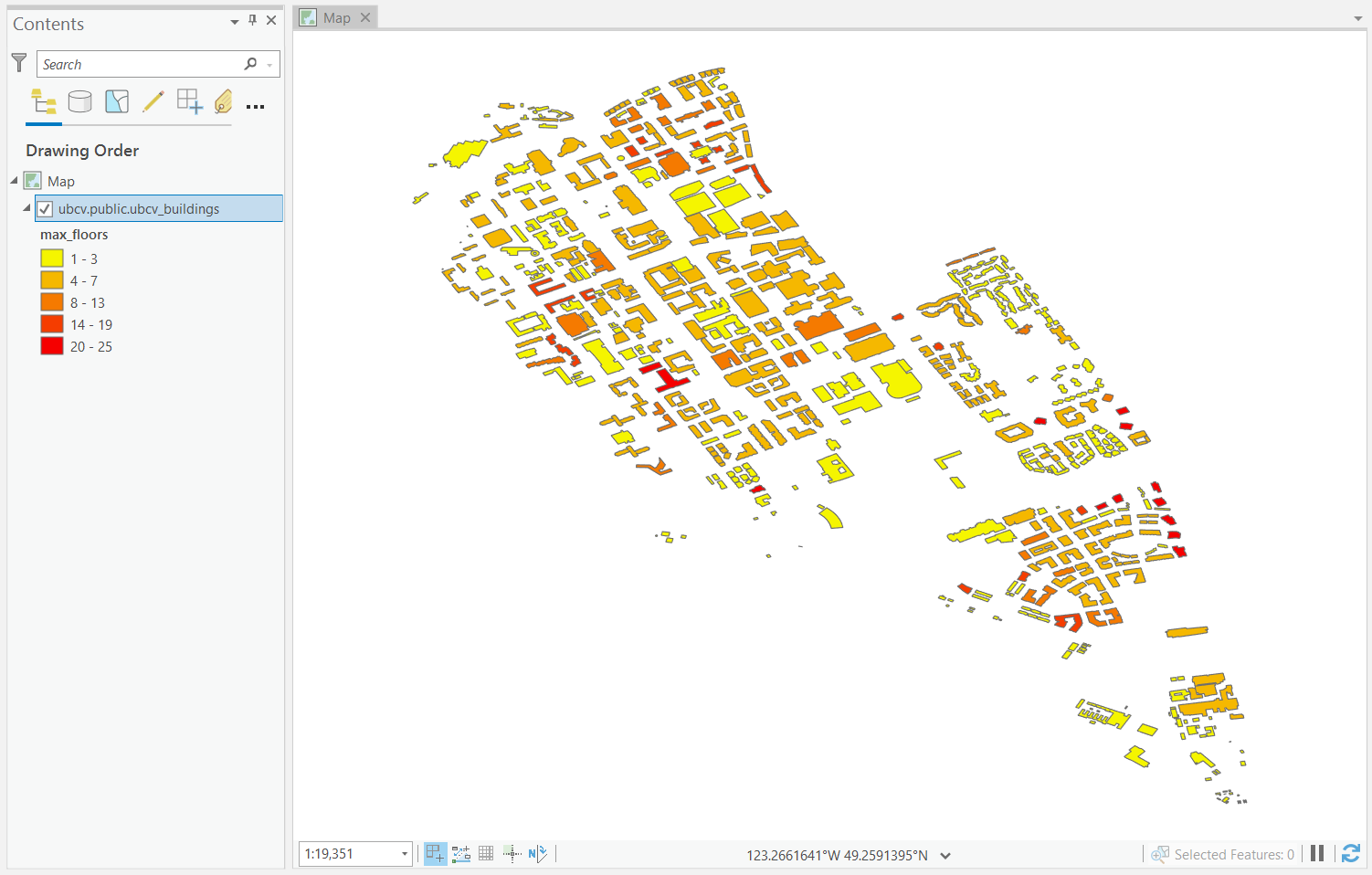Step 1: Open ArcGIS Pro and load in one vector layer from your project. Ensure that the layer has a Geographic Coordinate System of WGS 1984 and is not projected. Symbolize it however you like and remove all other layers from the map.