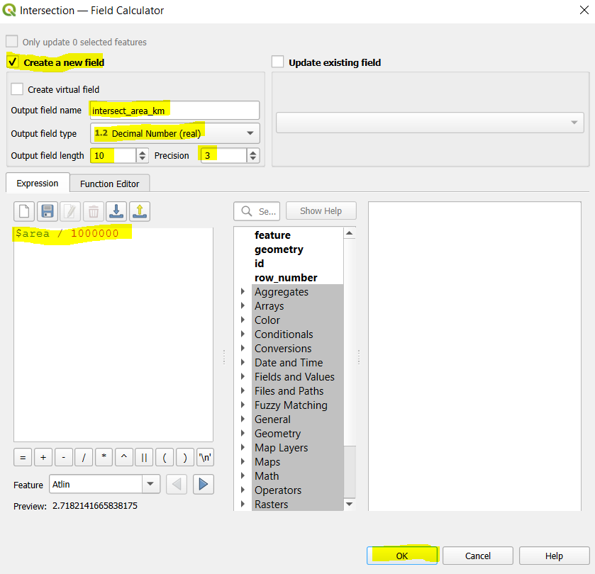Step 3: Next we will calculate the area in km2 of each of the intersected polygons. Open the attribute table of the Intersection layer we just created.