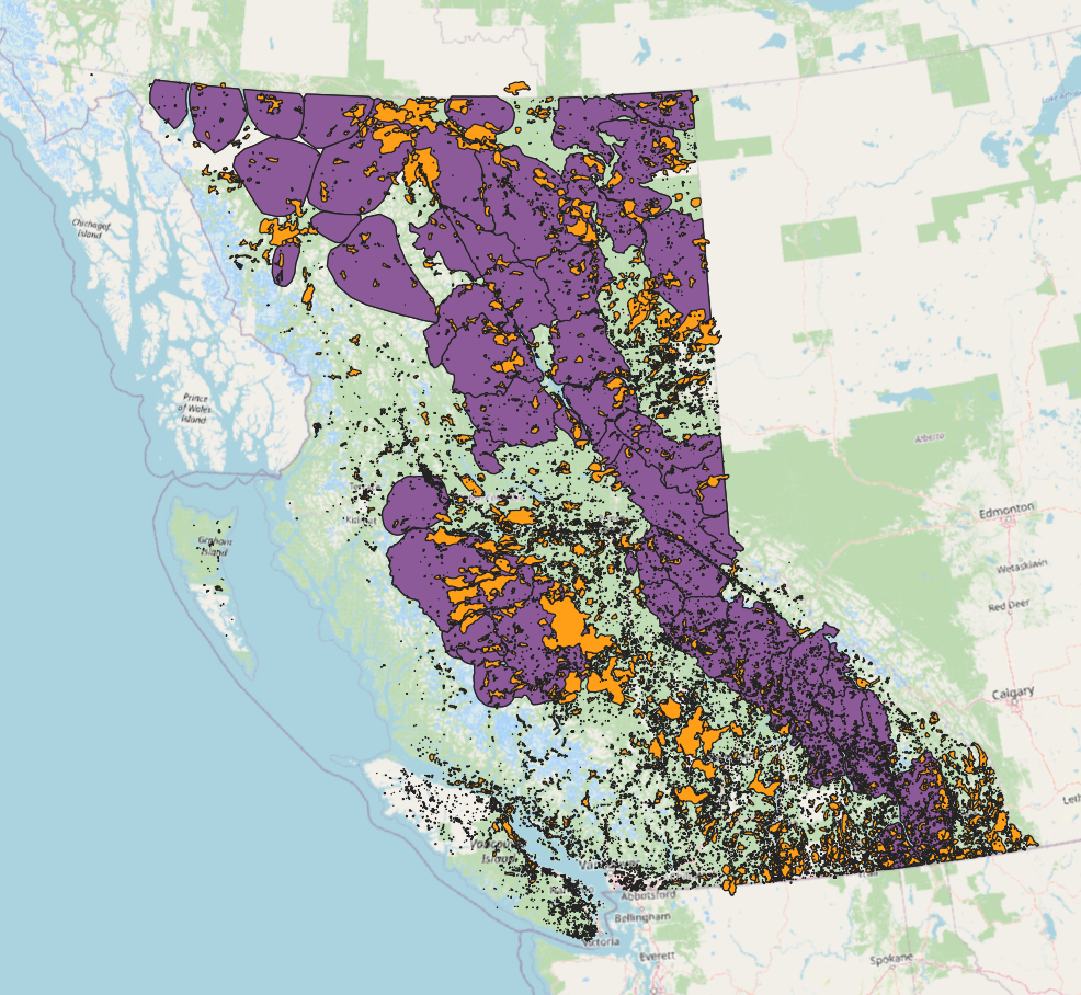 In this lab you will practice using overlay tools in QGIS to explore caribou habitat availability in BC. You will learn about Structured Query Language (SQL) and perform a table and spatial join in QGIS.