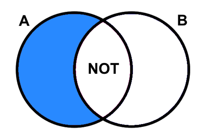 NOT is an exclusive statement. It is used to diminish the range of one desired characteristic. The tuple illustration for A NOT B is shown below.