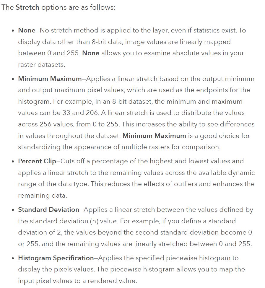 See the following link for more information about the strech types available in ArcPro: https://pro.arcgis.com/en/pro-app/latest/help/data/imagery/raster-display-ribbon.htm