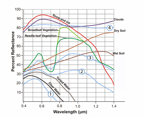 Figure 1: Reflectance characteristics of various features at different wavelengths.